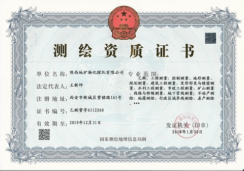 2、陕西省国土资源厅颁发的固体矿产勘查、区域地质调查乙级资质和地质钻探丙级资质。